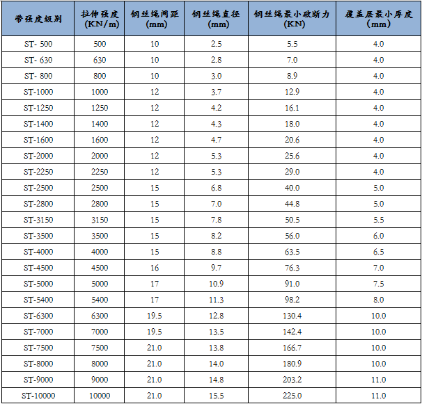 注:覆蓋膠厚度、鋼絲繩芯直徑、繩間距可以根據客戶要求。